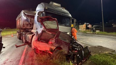 Ocupantes de carro escapam com ferimentos leves após batida frontal com carreta na BR-265