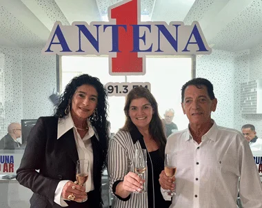 A prefeita Margarida Salomão, o secretário de Comunicação Giliard Tenório e a diretora-presidente da Rede Tribuna, Suzana Neves, no lançamento da rádio Antena 1, na frequência 91,3
